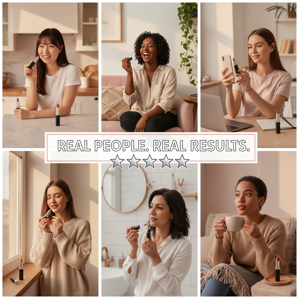 See our lipstick in action from morning coffee to evening cocktails. Real customers showcase unmatched staying power and vivid color.