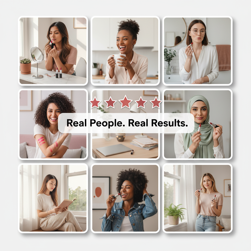 See our lipstick in action from morning coffee to evening cocktails. Real customers showcase unmatched staying power and vivid color.